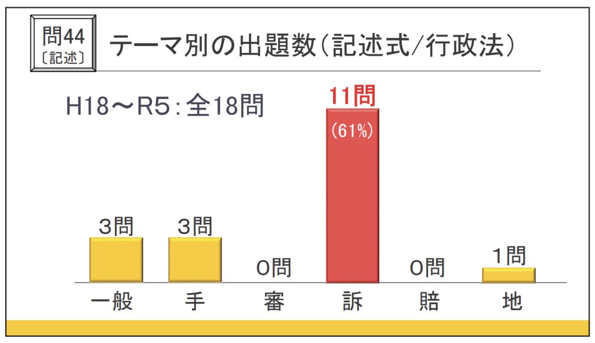 ご覧のとおり、行政事件訴訟法からの出題が圧倒的多数を占めています。