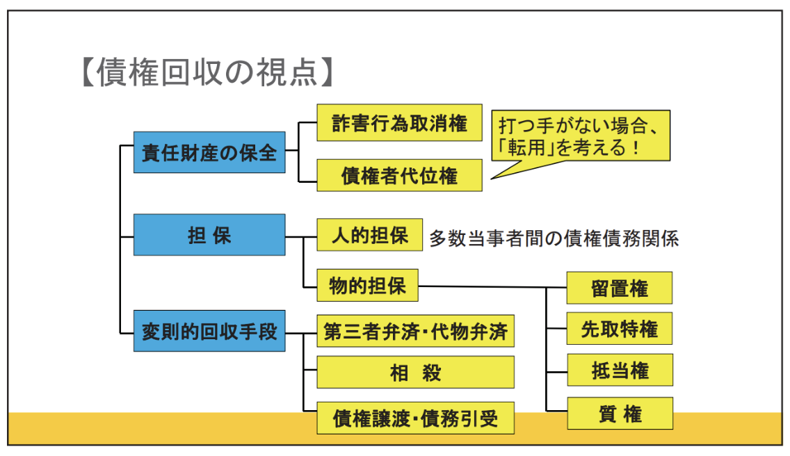 たとえば債権の問題が出たら、まず債権全体の体系図をイメージし、その中から「どの債権回収の手段を用いるべきか」を判断していく、といった具合です。