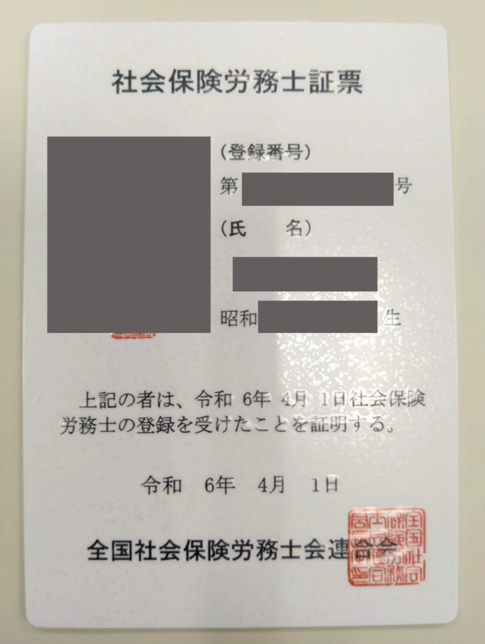 ※画像は社労士登録後に発行される「社会保険労務士証票」