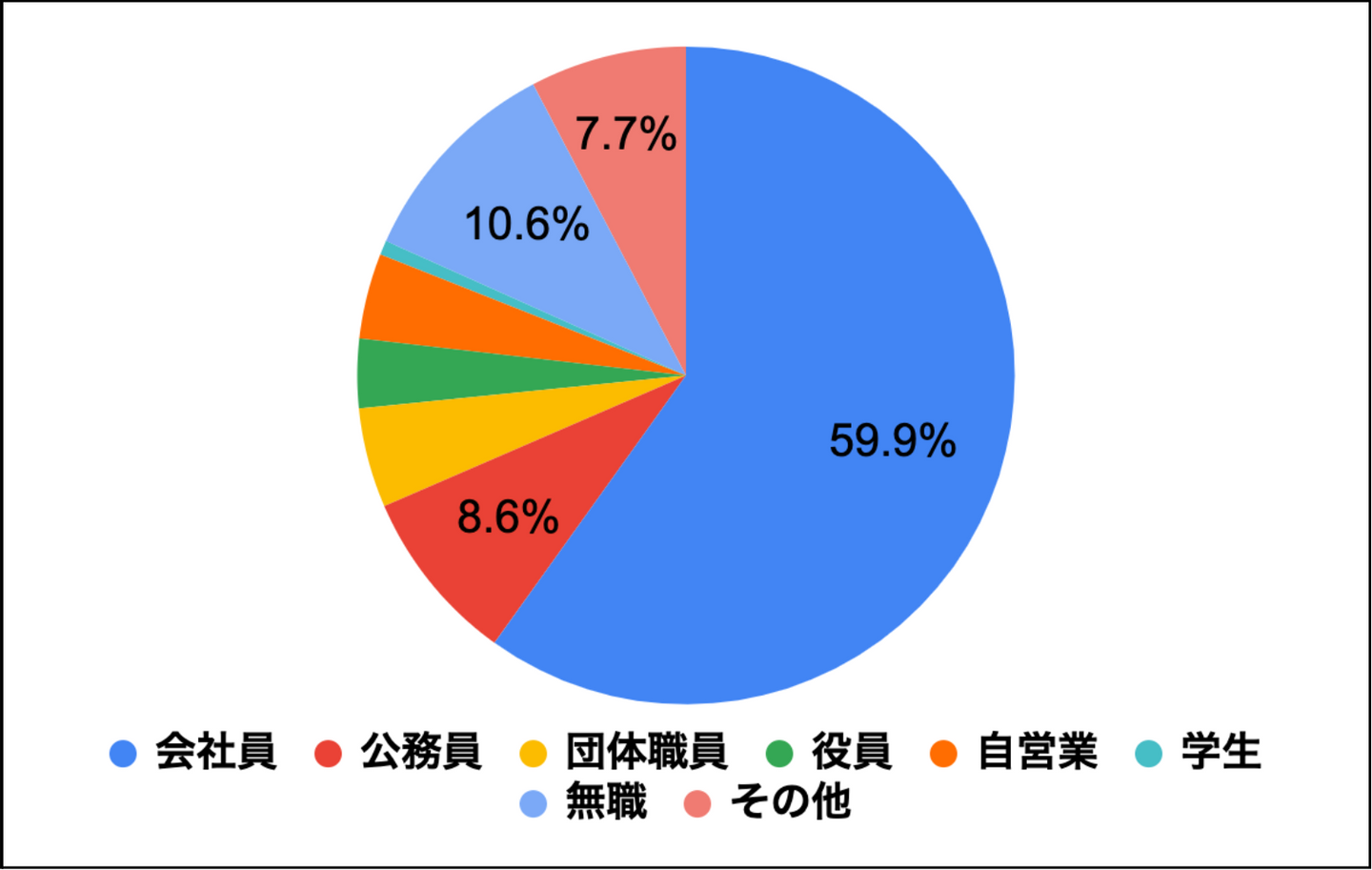 参考:厚生労働省|第56回社会保険労務士試験の合格者発表|[参考4]合格者数等の推移(過去10年)・第56回社会保険労務士試験合格者の年齢別・職業別・男女別構成
