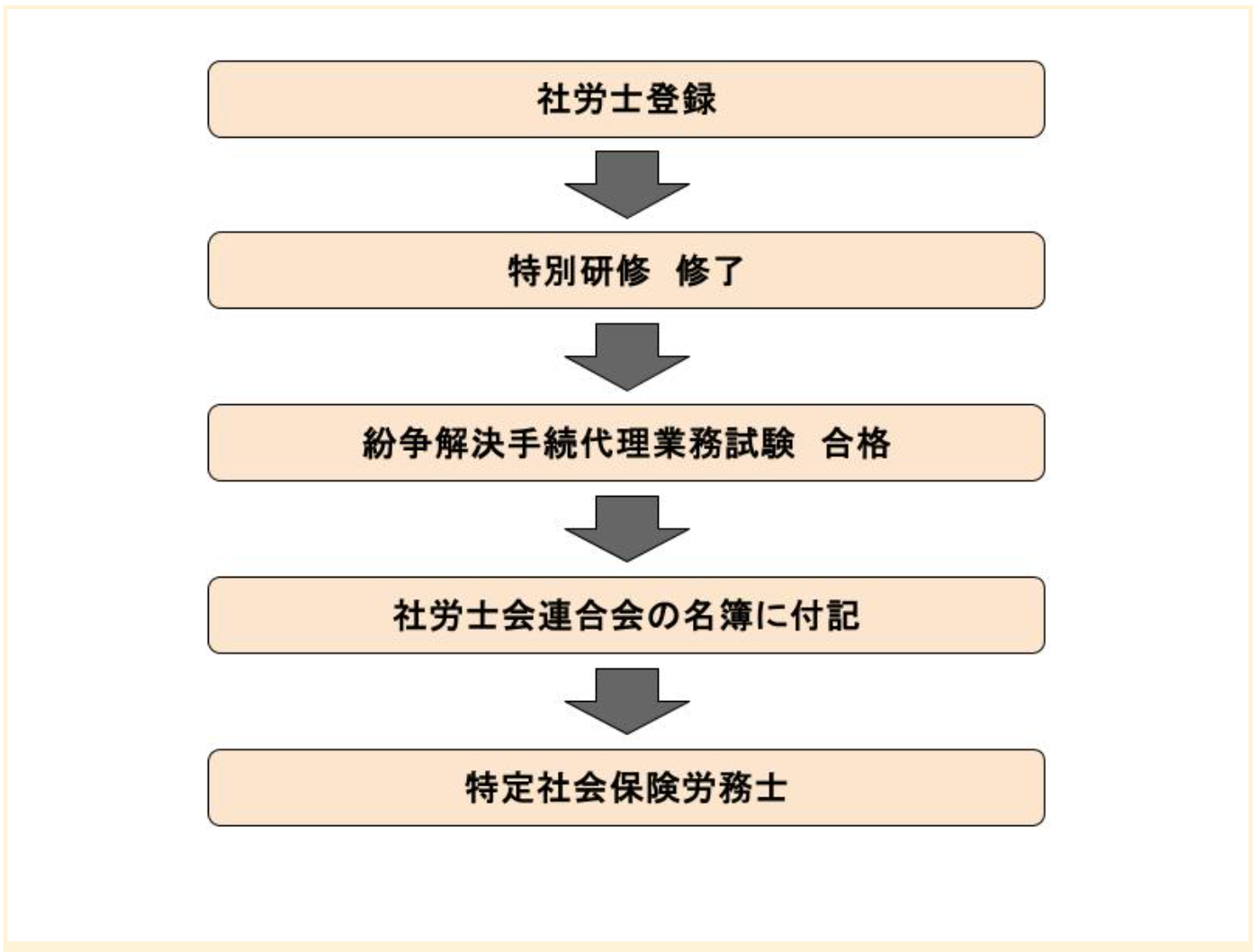 特定社労士になるためには、特別研修を経て紛争解決手続代理業務試験に合格し、かつその旨を社労士会連合会の登録に付記する必要があります。おおまかな流れは以下のとおりです。