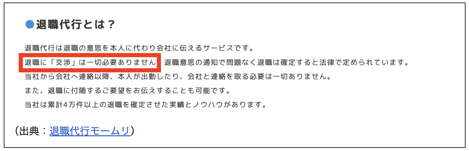 同じような問題が退職代行サービス全般で指摘されていますが、「モームリ」もこういった交渉を行っていたのではないかと報じられています。