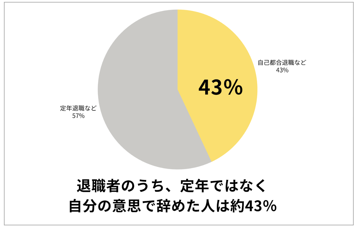 人事院の「令和5年度一般職の国家公務員の任用状況調査」によると、公務員を辞めた人のうち、辞職した人(定年退職ではなく自分の意思で辞めた人)の割合は、約43%にのぼります。