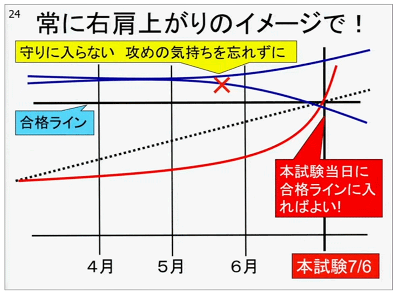 しかし、グラフが示すように、勉強を継続さえしていれば急激に実力が伸びる時期がやってきます。多くの合格者が「直前期になって急に問題が解けるようになった」「6月に入ってから急に手応えを感じた」と語るのは、まさにこの現象を経験しているからです。