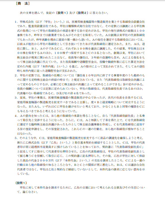 商法の問題でメインで出題されるのは会社法となりますが、会社法はいかにして条文を使いこなすかが重要な科目になります。